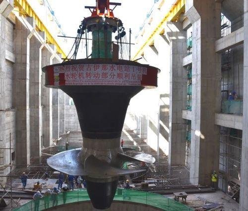 電站1號(hào)機(jī)組轉(zhuǎn)動(dòng)部分順利吊裝