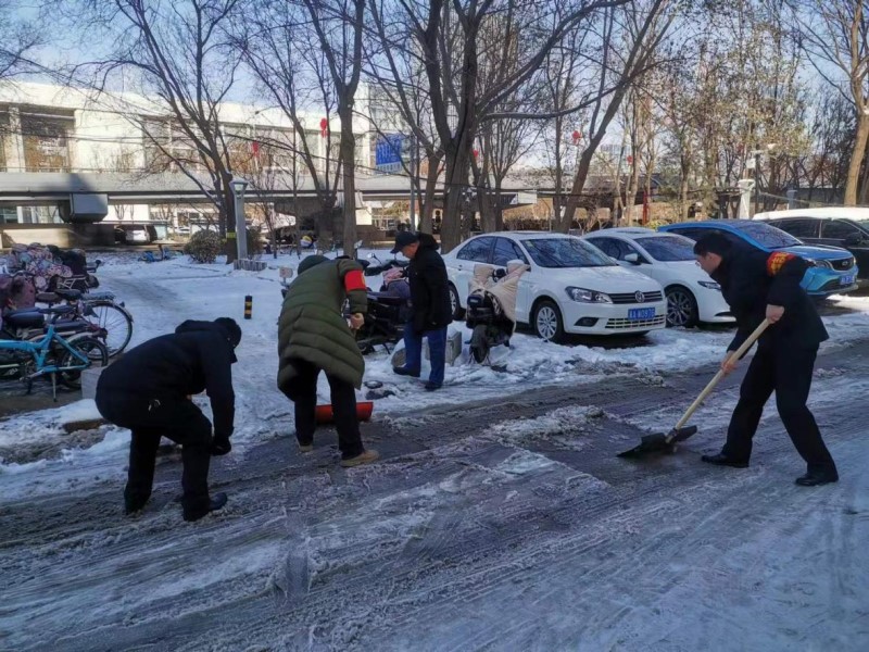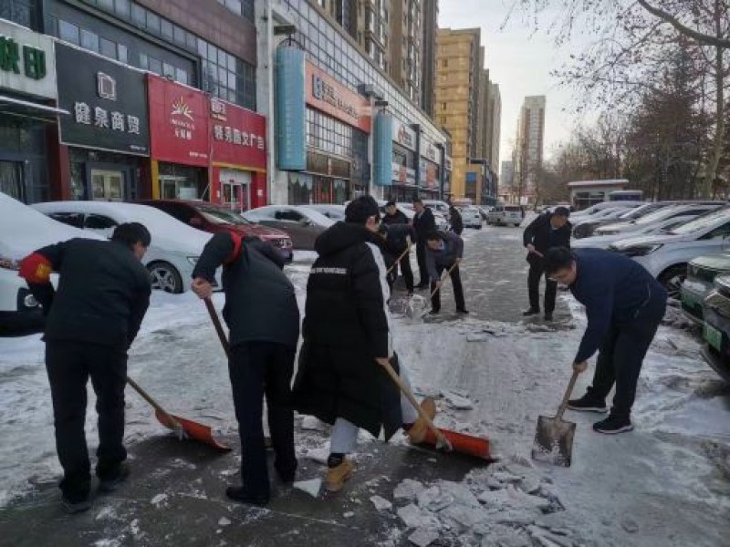 路面積雪經過行人及車輛的踩碾及降溫結冰變得又厚又硬,給清掃工作帶來了極大困難,但集團公司的黨員志愿者們不畏艱苦,干勁十足?;顒又?,大家分工明確、相互配合,利用鐵鍬、雪鏟等工具,有條不紊地開展積雪清理活動,重點對停車場主干道、人行通道及自行車存放處進行了集中清理,確保了日常路面暢通和群眾出行安全。