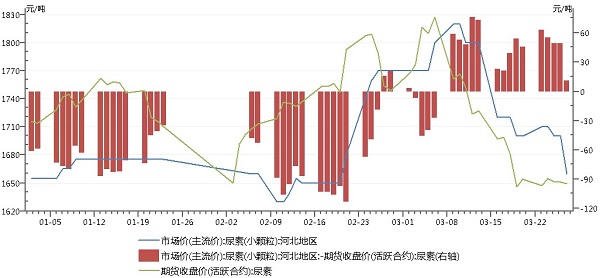 期貨方面,在經(jīng)歷了兩周的大幅下跌之后,本周尿素期貨逐步止跌企穩(wěn),主力UR2005合約基本圍繞著1650元/噸一線上下20元窄幅波動。雖國外疫情延續(xù)快速蔓延態(tài)勢,宏觀風險猶存,但各國與國際組織陸續(xù)出臺相關經(jīng)濟刺激政策,市場恐慌情緒有所緩解,包括尿素在內(nèi)的多數(shù)工業(yè)品價格止跌企穩(wěn),但受累于當前相對疲軟的基本面,尿素期貨反彈動能仍顯不足,期價呈現(xiàn)低位震蕩格局。