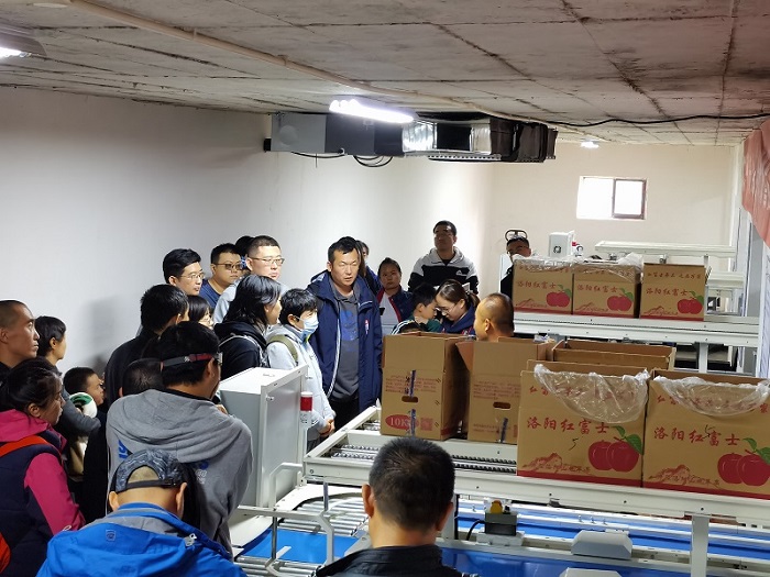 座談會后,楊書記帶領大家深入千畝蘋果種植園和智能分選車間,幫助大家詳細計算各環節成本構成和種植戶、貿易商的思路與貿易習慣,為期貨行情分析提供了第一手資料。