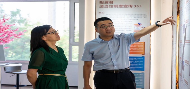 活動伊始,恒銀期貨總經理湯志江帶領和講解下,河北經貿大學副校長杜紅梅、金融學院黨委書記魏健、金融學院院長楊雪美、金融學院黨委副書記王薇、金融學院副院長竇麗琛、金融學院就業工作負責人高鵬飛等一行領導參觀了恒銀期貨總部的辦公區和恒銀期貨投資者教育基地,深入了解了公司的組織架構、業務模式、企業文化、發展戰略及黨建扶貧等工作。通過參觀,經貿領導對于恒銀期貨的辦公環境、業務模式和發展前景給予了高度評價。