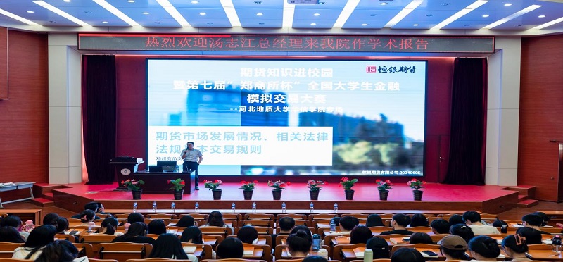 2024年6月5日,恒銀期貨總經(jīng)理湯志江率領(lǐng)團(tuán)隊(duì)在河北地質(zhì)大學(xué)華信學(xué)院報(bào)告廳開展了一場別開生面的“期貨知識進(jìn)校園”活動,并同步舉辦了第七屆“鄭商所杯”全國大學(xué)生金融模擬交易大賽——河北地質(zhì)大學(xué)華信學(xué)院專場宣講會。為了預(yù)熱本次活動,校方在公眾號發(fā)布了活動通告,受到了各系學(xué)生的熱烈追捧,參會人數(shù)超過300人。此次活動旨在加強(qiáng)期貨知識在校園的普及與推廣,提升大學(xué)生對金融市場的認(rèn)識與理解,同時(shí)也為廣大師生提供了“鄭商所杯”這樣一個(gè)展示才華、交流學(xué)習(xí)的平臺。