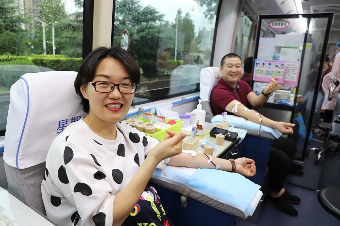 這些獻血員工當中,有的是多次參加無償獻血的老同志,也有剛參加工作不久的新員工,其中不乏巾幗不讓須眉的女同志。“這是我第一次獻血,在國慶節到來之際能奉獻自己的一份愛心,感覺很有意義?!眹煌顿Y集團黨群工作部經理李杰自告奮勇第一個走上前。員工李帥早早地就過來排隊,這已經是他第三次獻血了?!拔迥昵霸诓┪镳^廣場看到獻血車,就上去獻了第一次血,后來就停不下來了?!崩顜浉嬖V記者。
