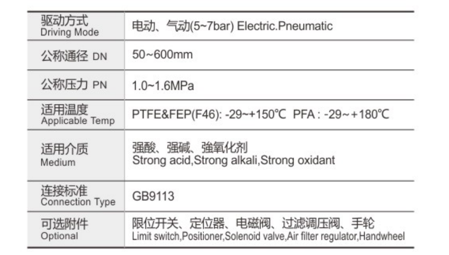 D671F四氟密封氣動(dòng)對夾式蝶閥采用帶有球形密封表面的襯氟塑料包襯蝶板或不銹鋼板,配以閥座基部的硅橡膠襯墊調(diào)節(jié)閥門的密封性能;該閥門操作輕便,嚴(yán)密的密封性能,超長的使用壽命;可作快速切斷或調(diào)節(jié)流量之用。適用于要求可靠密封和良好調(diào)節(jié)特性的場合。閥體采用分體式,閥軸現(xiàn)端的密封由蝶板與閥座之間的旋轉(zhuǎn)基面加氟橡膠來控制, 從而達(dá)到產(chǎn)品結(jié)構(gòu)緊湊、外形美觀、工藝合理、性能可靠。切斷閥保證閥軸不與腔內(nèi)流體介質(zhì)接觸,更換閥軸時(shí)非常方便,閥門不需要拆離離管道即可完成。產(chǎn)品廣泛適用于各種不同類型工業(yè)管道中液體和氣體(包括蒸氣)的輸送,特別是具有嚴(yán)懲腐蝕性介質(zhì)的使用場合如硫酸、氫氟酸、磷、酸、氯氣、強(qiáng)堿,王水等具有強(qiáng)腐蝕的介質(zhì)。