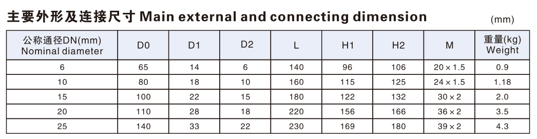 公稱直徑DN(mm) 尺寸 重量(kg)