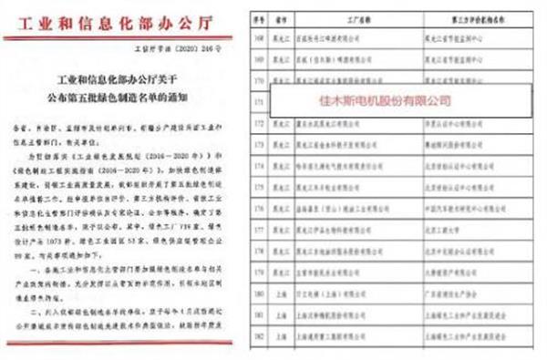 哈電集團(tuán)佳電股份被工信部評(píng)為“綠色工廠”